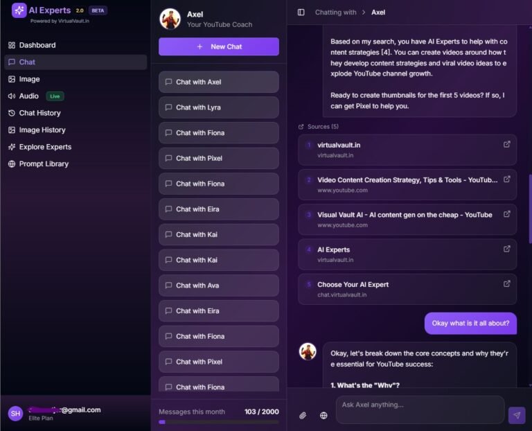 Collaborate seamlessly with your AI team — strategists, writers, designers, and video mentors — all inside one unified chat workspace.