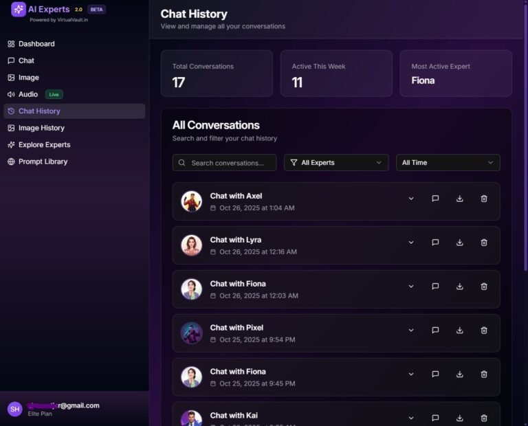 Access every conversation you’ve ever had with your AI Experts — all neatly organized and searchable.