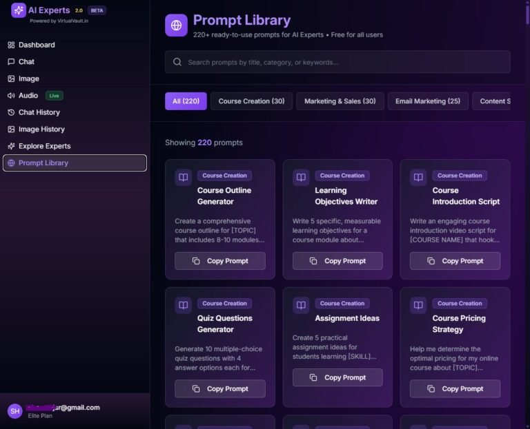 From course creation and marketing copy to social content and email funnels — just copy, paste, and let your Experts handle the rest.